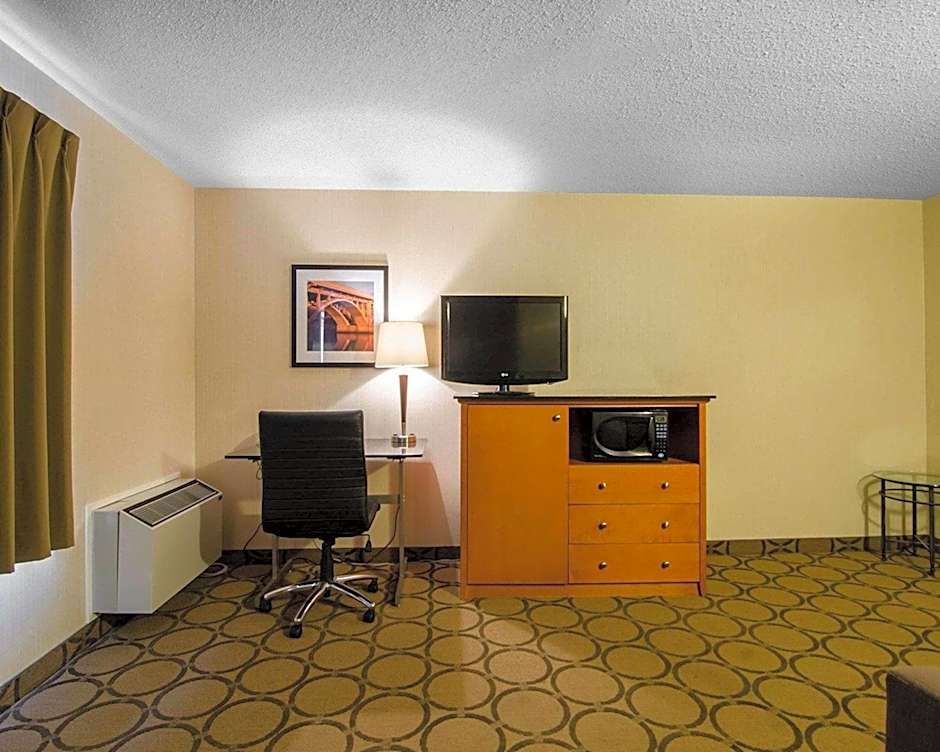 Free Wi-Fi and a 32-inch flat-screen cable TV are featured in this room. A microwave, fridge and tea and coffee-making facilities are provided. An ergonomic chair and work desk are included. Hot breakfast and parking are included in the room rate.